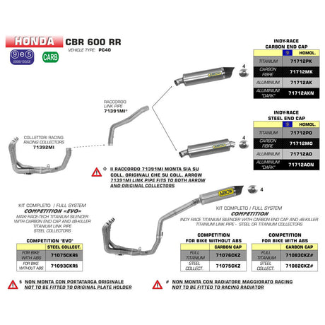 Arrow 71712PK Indy Race Titanium Slip-On Muffler w/Carbon End Cap for Honda CBR 600 RR 07-12