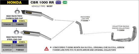 Arrow 71684PK Maxi Race-Tech Titanium Slip-On Muffler w/Carbon End Cap for Honda CBR 1000 RR 04-07