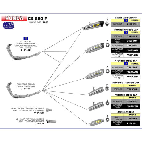 Arrow 71821PK Race-Tech Titanium Slip-On Muffler w/Carbon End Cap for Honda CB 650 F/CBR 650 F 14-18