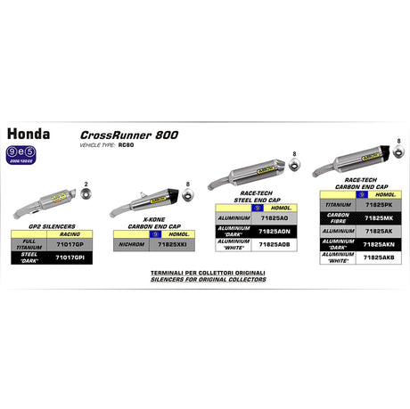 Arrow 71825AK Race-Tech Aluminium Slip-On Muffler w/Carbon End Cap for Honda CrossRunner 800 15-20