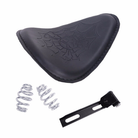Twin Power Seat Combo Small Size Black Leather Solo Seat with Skull and with Chrome Spring set