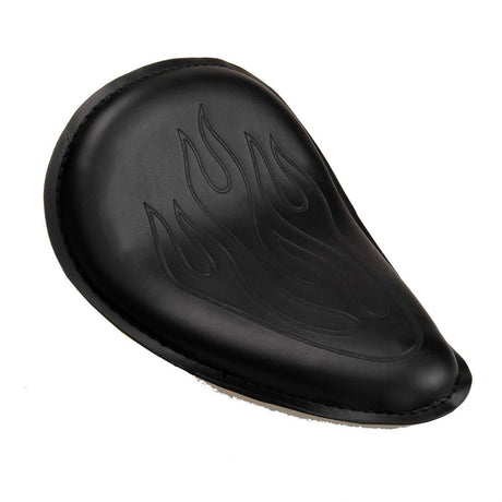 Twin Power Seat Combo Small Size Black Leather Solo Seat with Flame and with Chrome Spring set