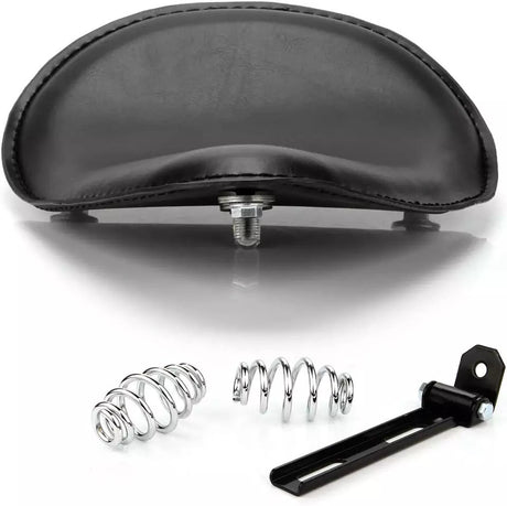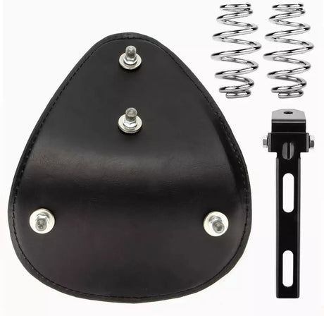 Twin Power Seat Combo Small Size Black Leather Solo Seat with Skull and with Chrome Spring set