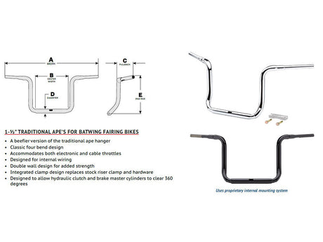 LA Choppers LA-7336-10BLK 13" x 1-1/4" Pullback Kage Fighter Handlebar Gloss Black