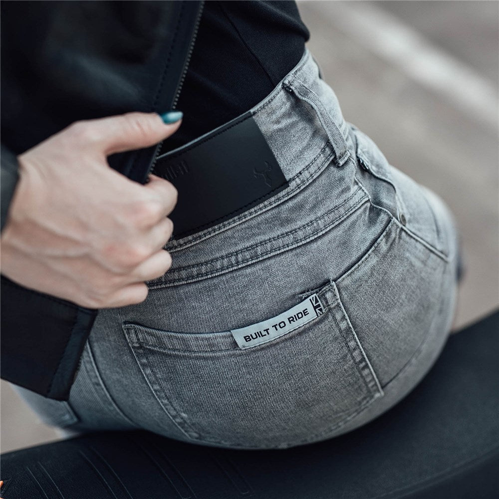 Available in Slim and Straight fits, the Willow’s subtle washedout whisker finish and grey stitching delivers a stylish mid-rise fit with an AA rating thanks to the Covec® Oneskin denim with breathable RE ZRO® level 1 hip and knee armour.