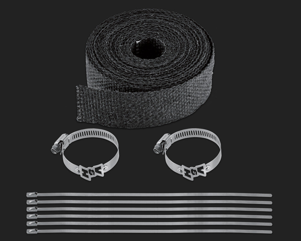 - The black wrap tape is composed of composite fiberglass that is treated to help lock in the heat and reduce the radiant heat a realistic 50%, allowing you to run with or without heat shields for the ride